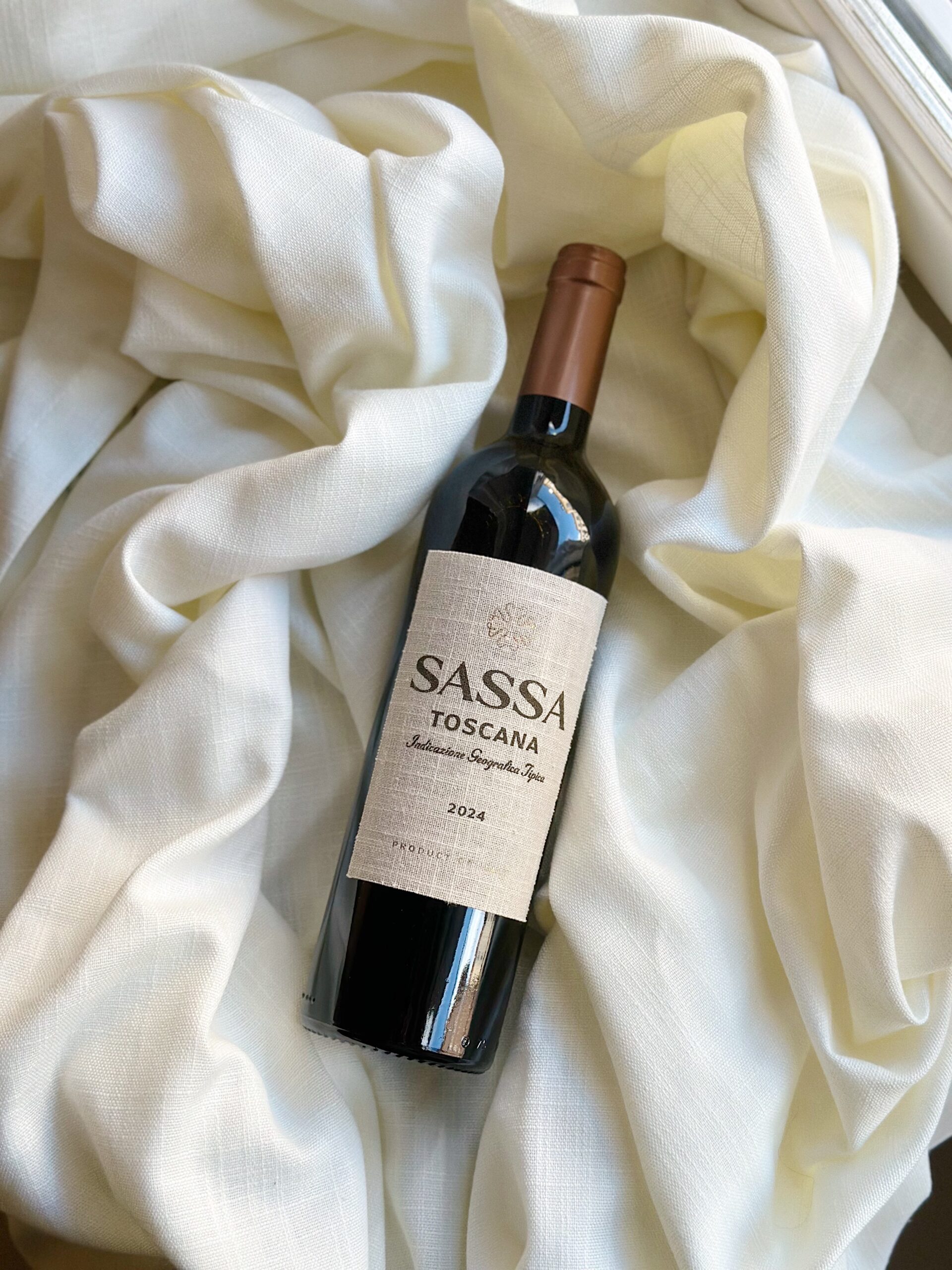 Morbido lino, intenso vino rosso e la sobria eleganza della Toscana, dove la materia incontra il gusto. Sassa Toscana IGT 2024 🍷 #Sassa #redwine #linen